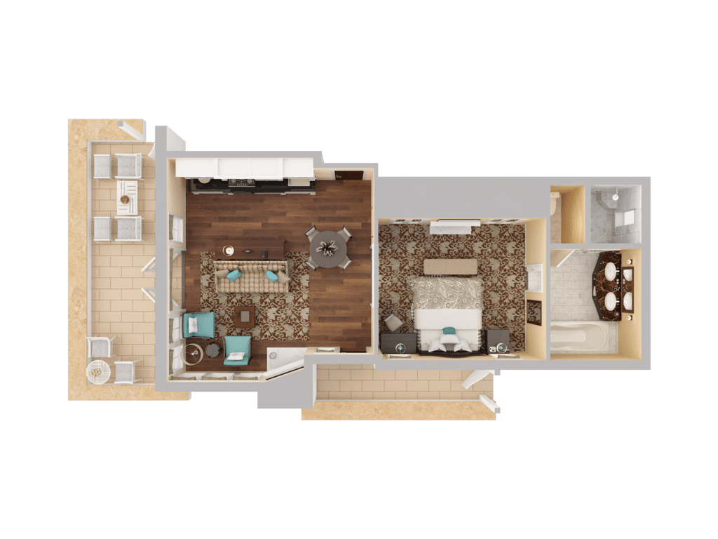 - 1,085 sq. ft. – 1 Bedroom/1.5 Bath – Sleeps 2-6