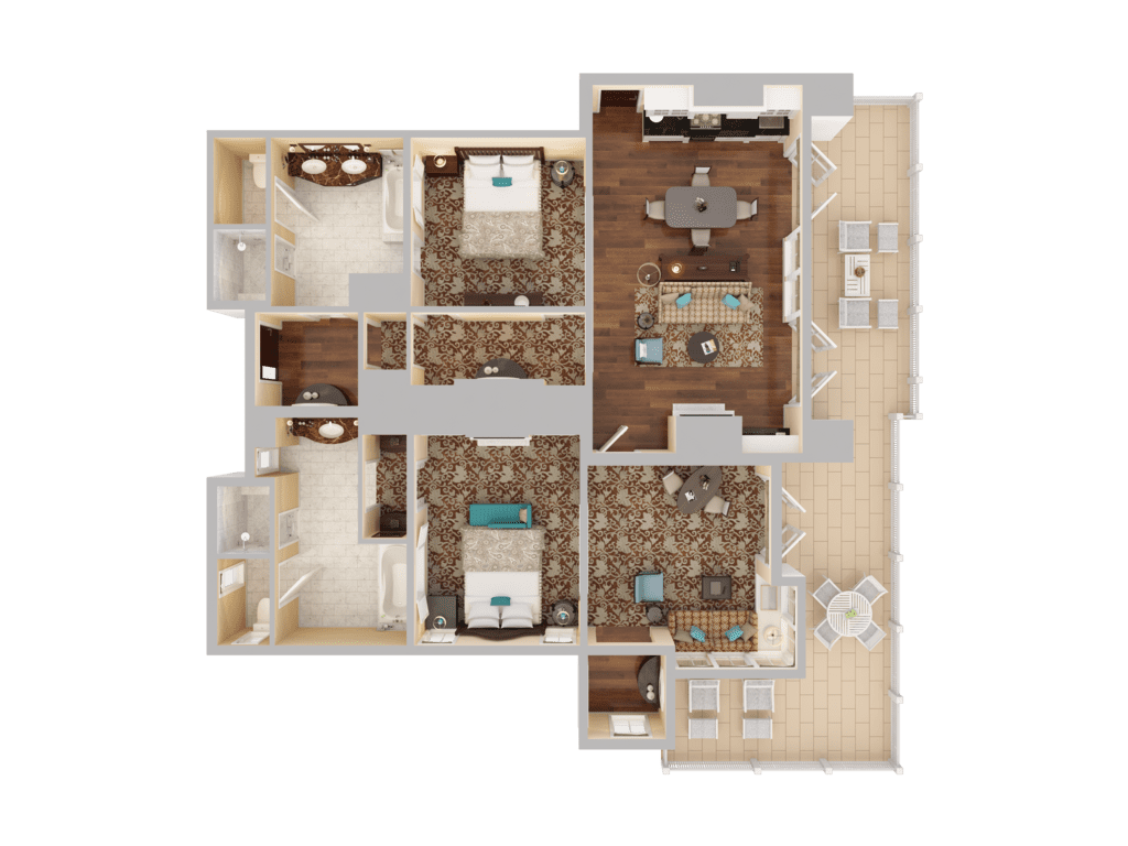 - 1,635 sq. ft. – 3 Bedrooms/3 Baths – Sleeps 8-12