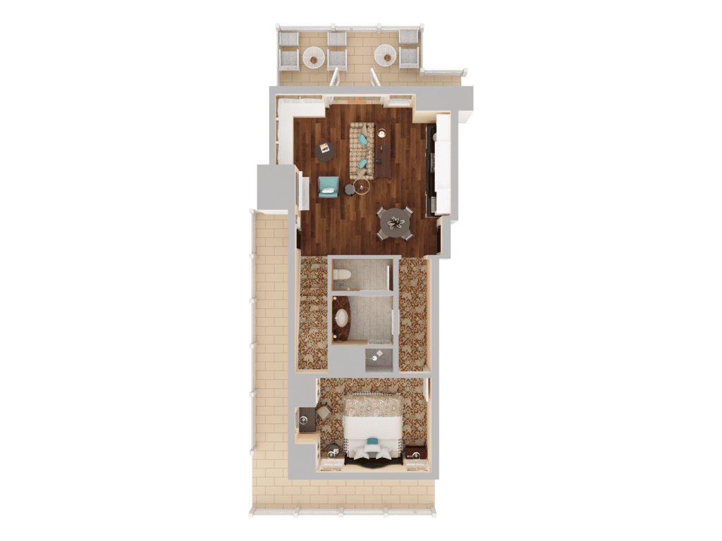 - 1,085 sq. ft. – 1 Bedroom/1.5 Bath – Sleeps 2-6